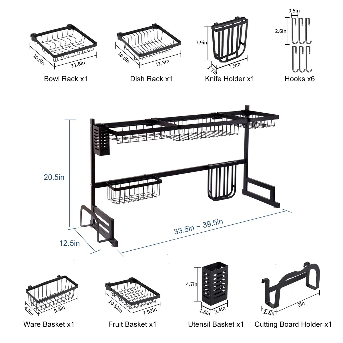 Égouttoir et Organiseur Mural de Cuisine – Support Acier Inoxydable Multifonction